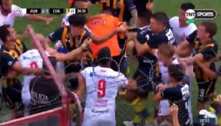 Σε ρινγκ μετέτρεψαν τον αγωνιστικό χώρο οι ποδοσφαιριστές της Ουρακάν και της Ροζάριο Σεντράλ κατά τη διάρκεια της αναμέτρησης ανάμεσα στις δύο ομάδες για το Πρωτάθλημα της Αργεντινής.