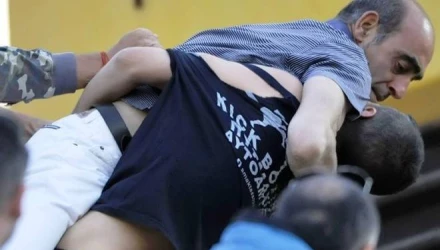 Συγκεκριμένα, δύο οπαδοί ήρθαν στα χέρια ρίχνοντας αρκετό ξύλο με τους αστυνομικούς να επεμβαίνουν.