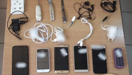 Ακολούθησαν έρευνες στο χώρο εργασίας και στο σπίτι της υπαλλήλου, όπου βρέθηκαν και κατασχέθηκαν συνολικά 3 κινητά τηλέφωνα και φορτιστές, 2 συσκευές ασύρματης πρόσβασης στο διαδίκτυο (WiFi), ακουστικά, φορητή συσκευή αποθήκευσης (USB), ενώ στην κατοχή του ιδιώτη βρέθηκαν και κατασχέθηκαν φορητή συσκευή αναπαραγωγής μουσικής, κινητό τηλέφωνο, 425 ευρώ και πακέτο σύνδεσης κινητού.