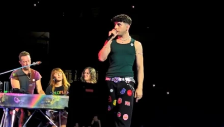 Ο νεαρός καλλιτέχνης ανέβηκε στο stage, αφού επιλέχθηκε από τον frontman των Coldplay, Chris Martin ως ένας από τους πιο επιτυχημένους Έλληνες τραγουδιστές, και τραγούδησε το «Πες».