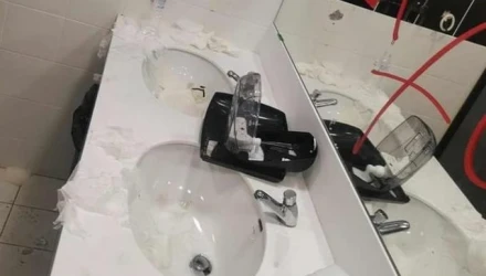 Σε φωτογραφίες που κυκλοφορούν στο διαδίκτυο, φαίνεται ότι υπάρχουν φθορές στις τουαλέτες, ενώ έχουν γράψει με μαρκαδόρους σε τοίχους και σε καθρέφτες. Επίσης κολλήσει πολλά αυτοκόλλητα.