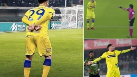 Ο άσος της Βερόνα προσποιήθηκε τραυματισμό και όταν ο διαιτητής του ζήτησε να περάσει έξω αντέδρασε ευρηματικά μεν αλλά προκλητικά δε, «σταυρώνοντας» τα χέρια του ως «χειροπέδες».